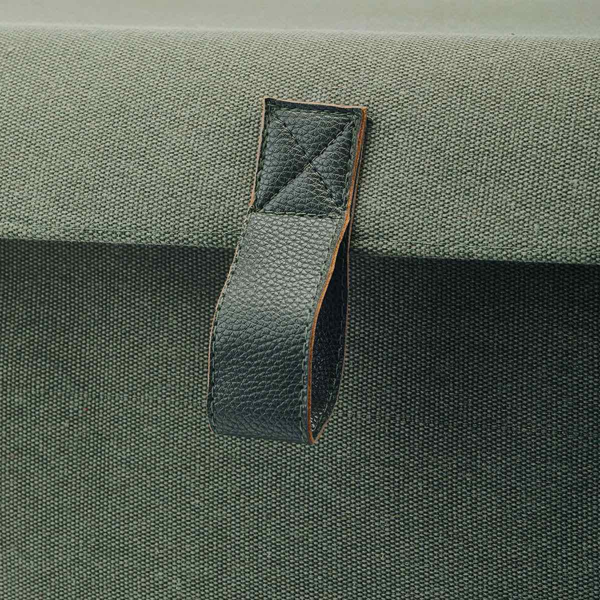 Виготовлений з 50% бавовни та 50% поліестеру, має деталі зі штучної шкіри та магнітну застібку.