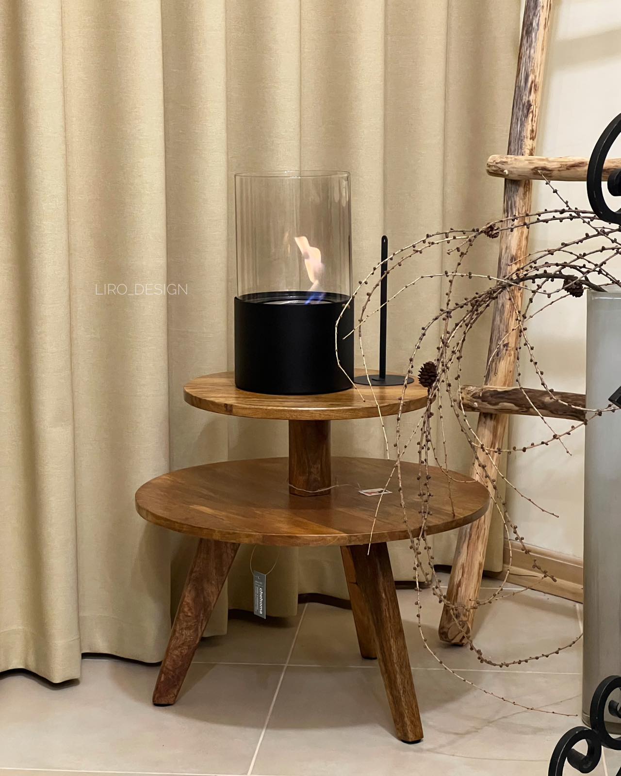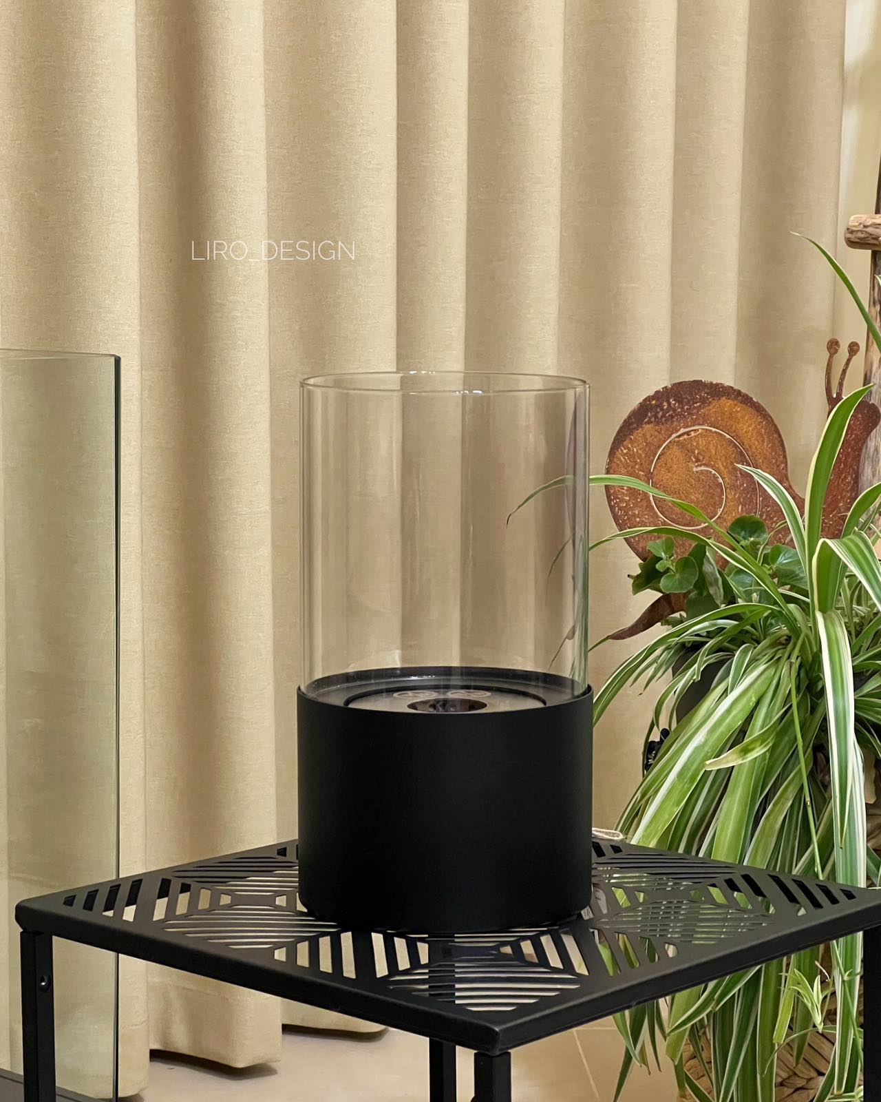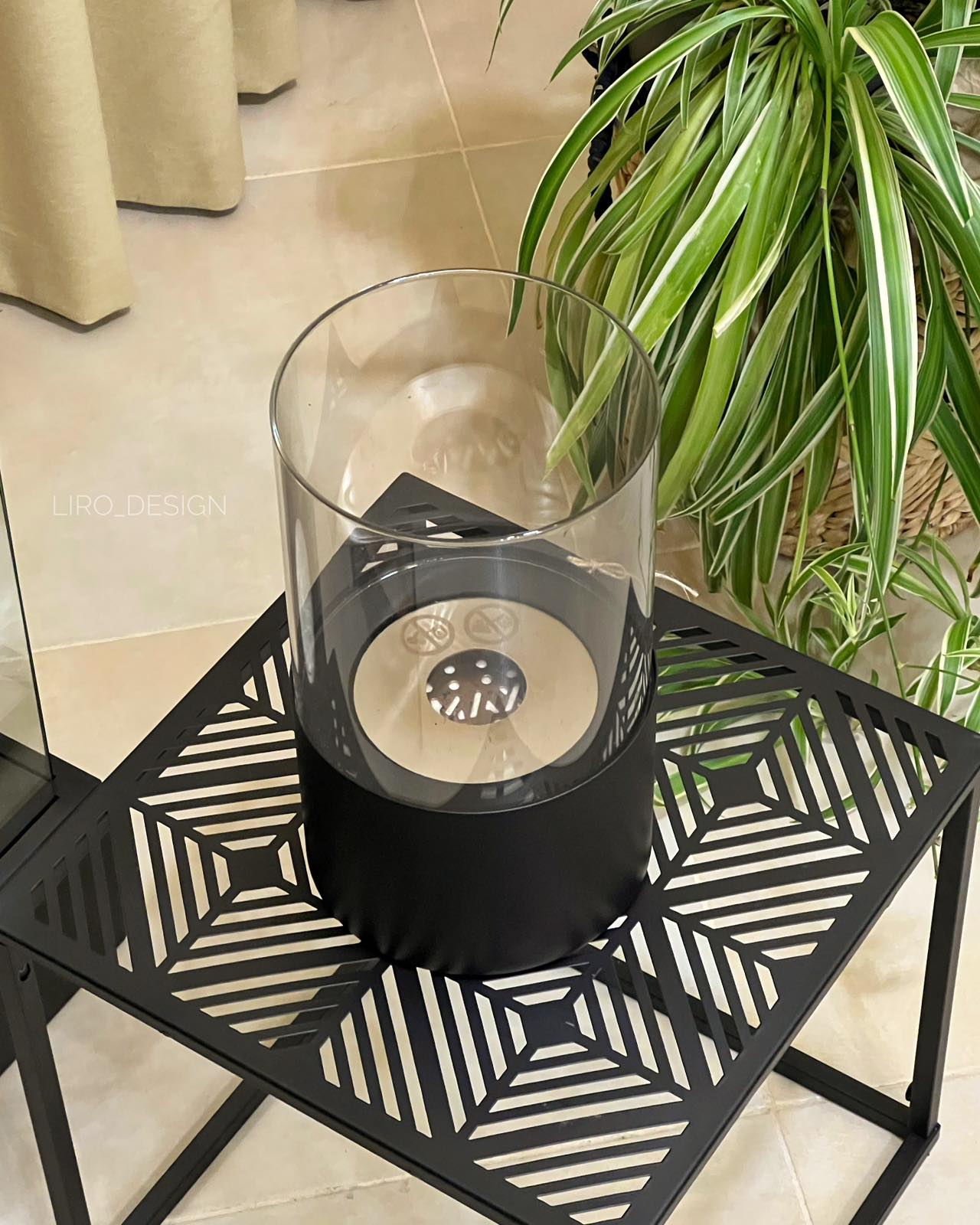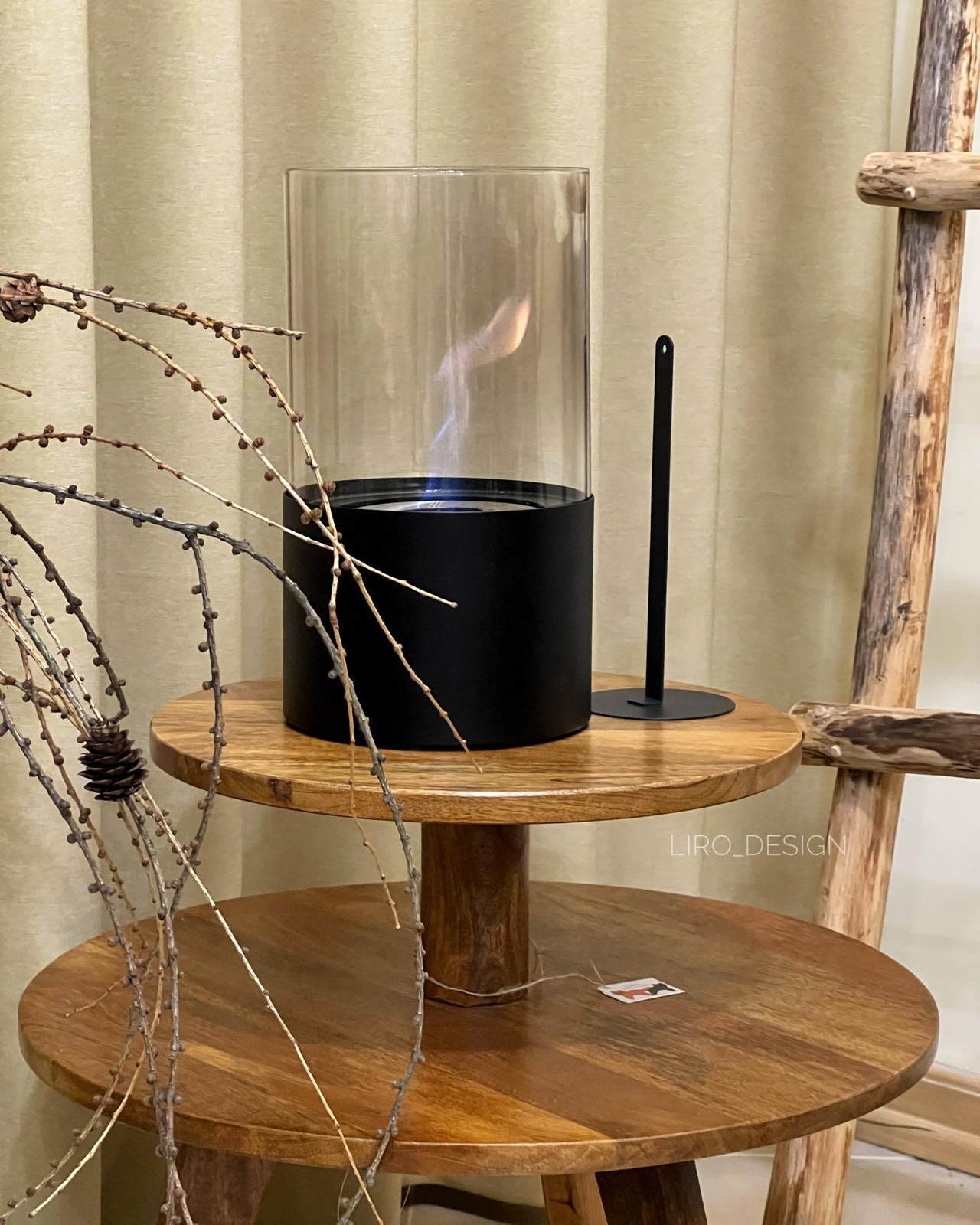Працює від біоетанолу. Має гасник.