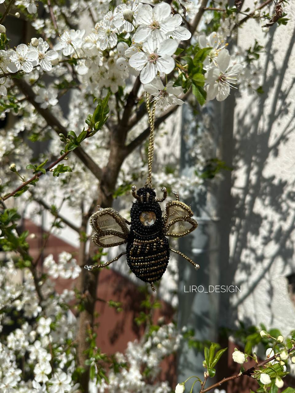 Декоративна підвіска у формі бджоли- це витончений декор, що наповнює простір теплом і легкістю. Чудово доповнить будь- який інтер'єр чи декоративну композицію. Виготовлена вручну та прикрашена бісером.
