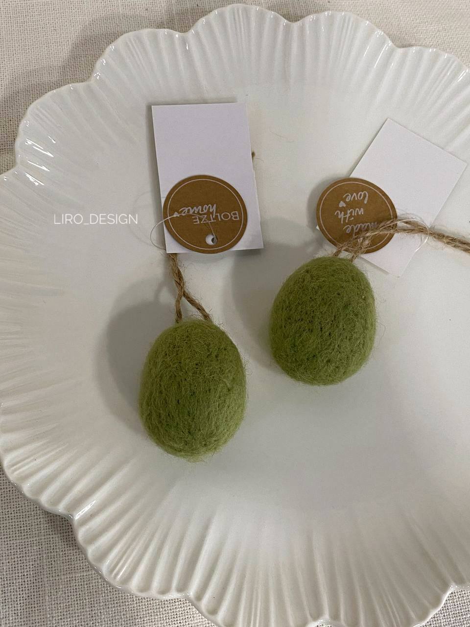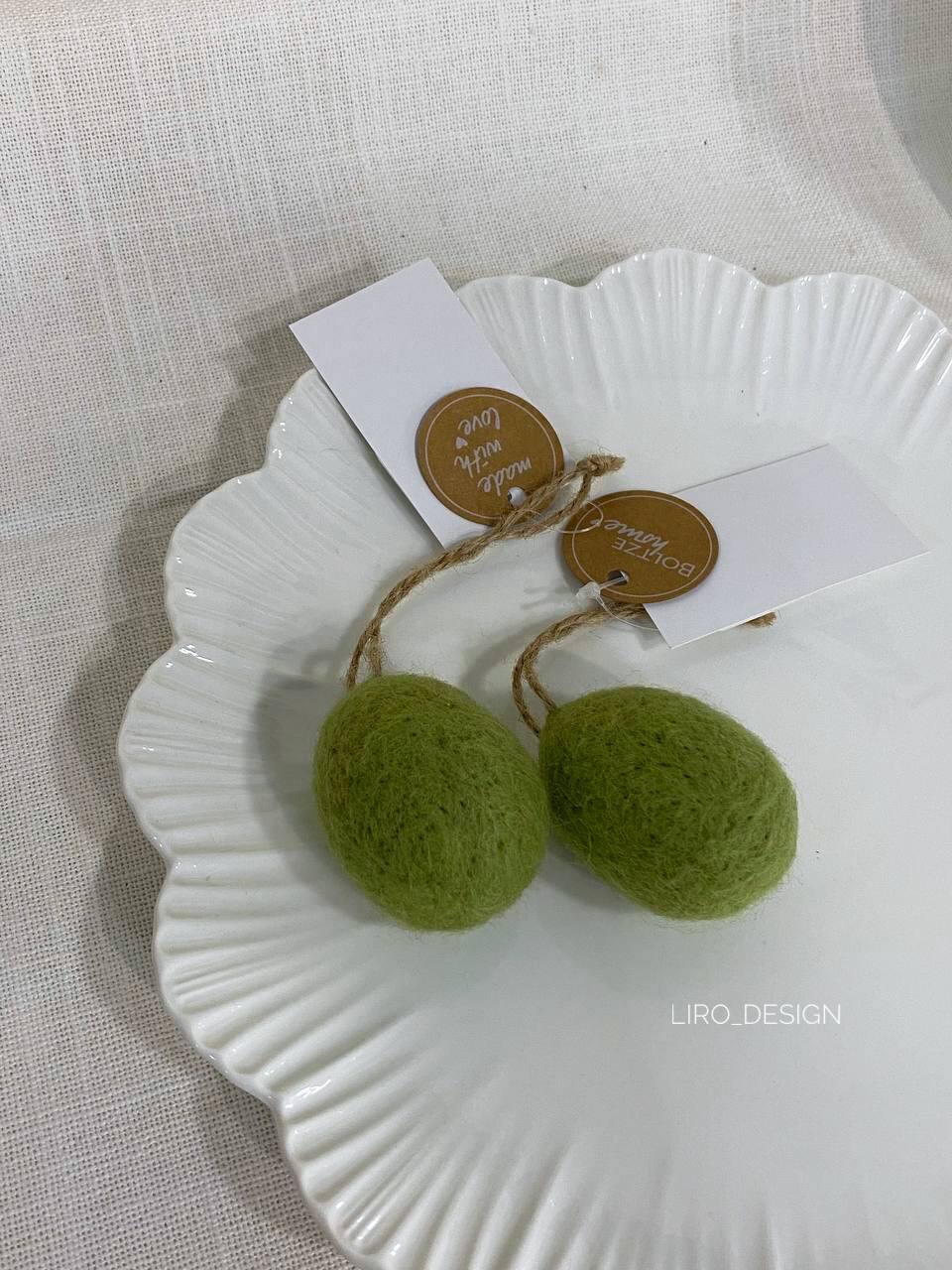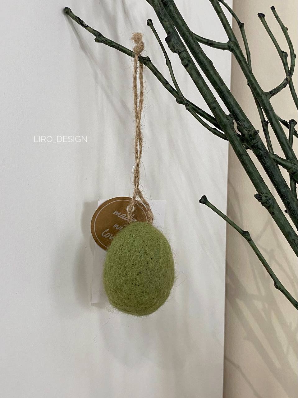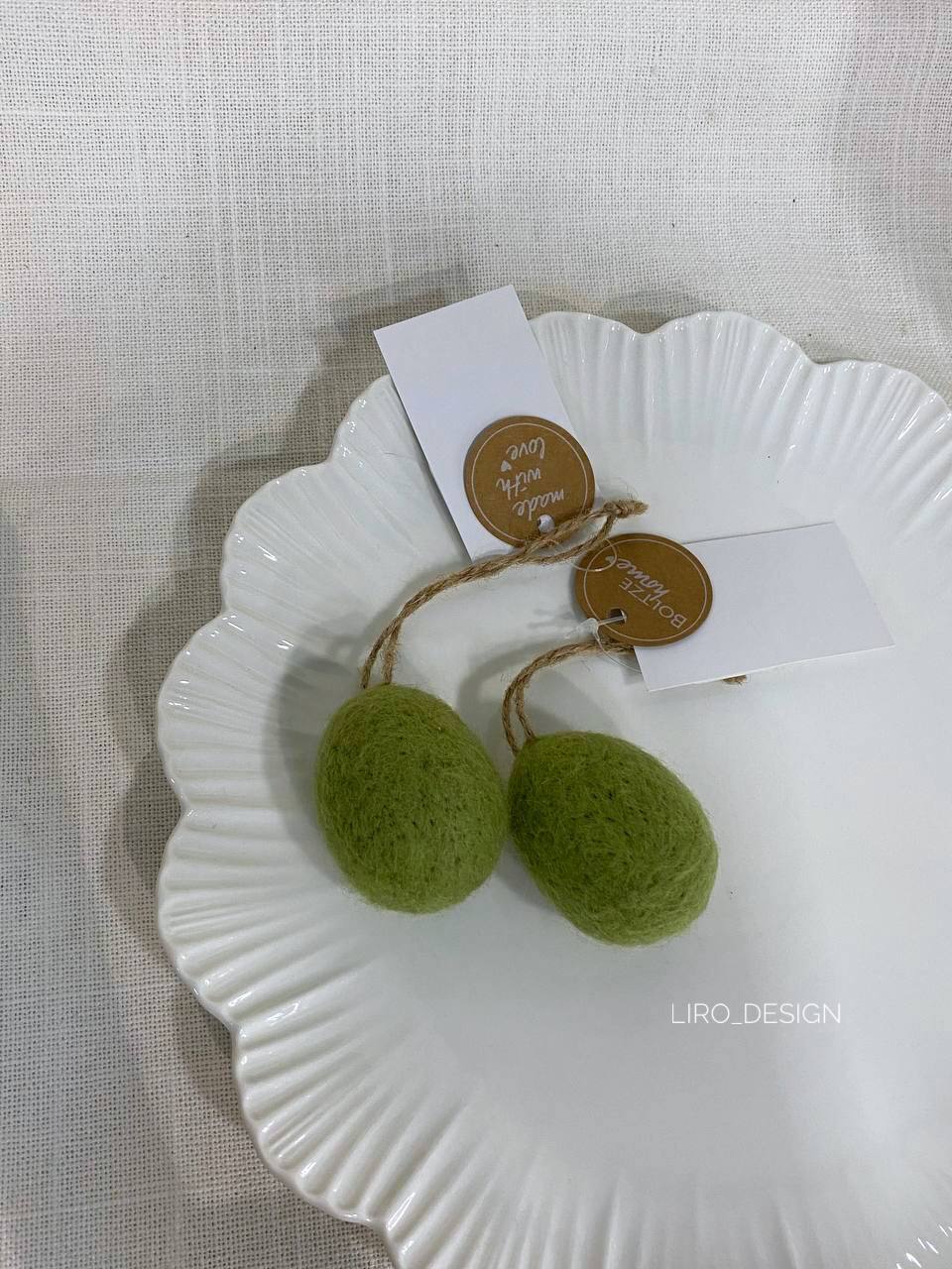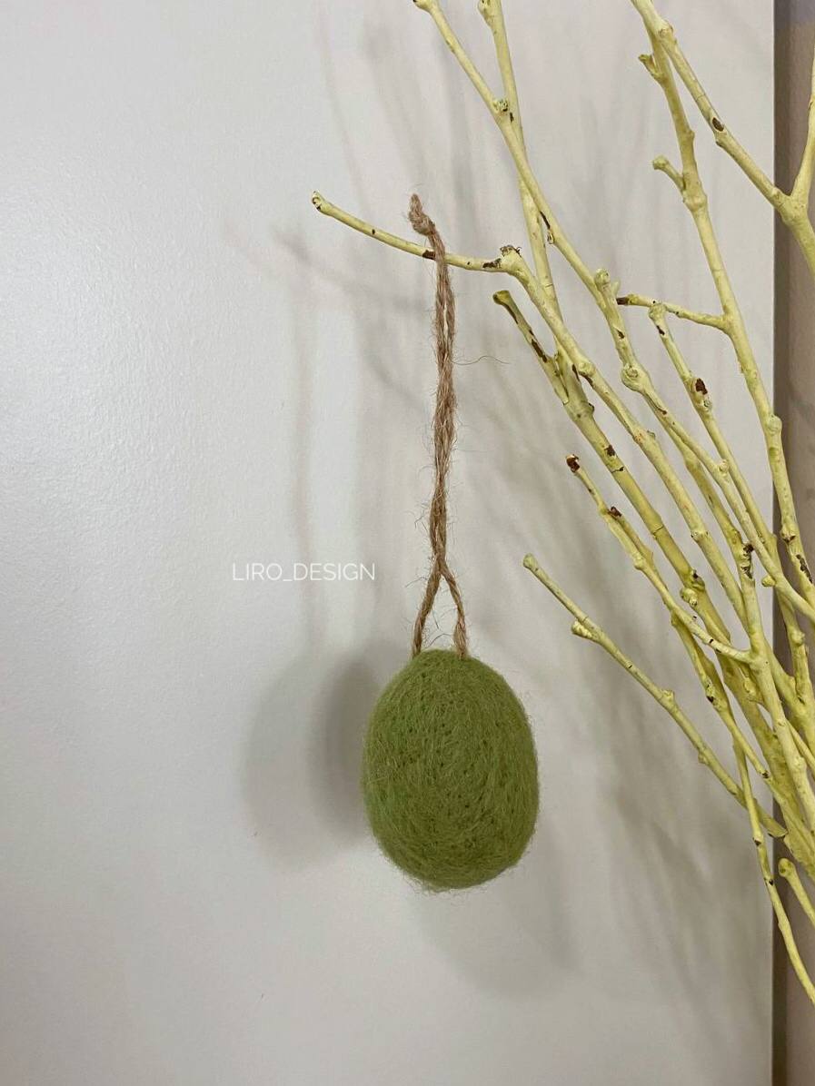 Підвіска писанка валяна (зелена, 3.5*5.5 см)