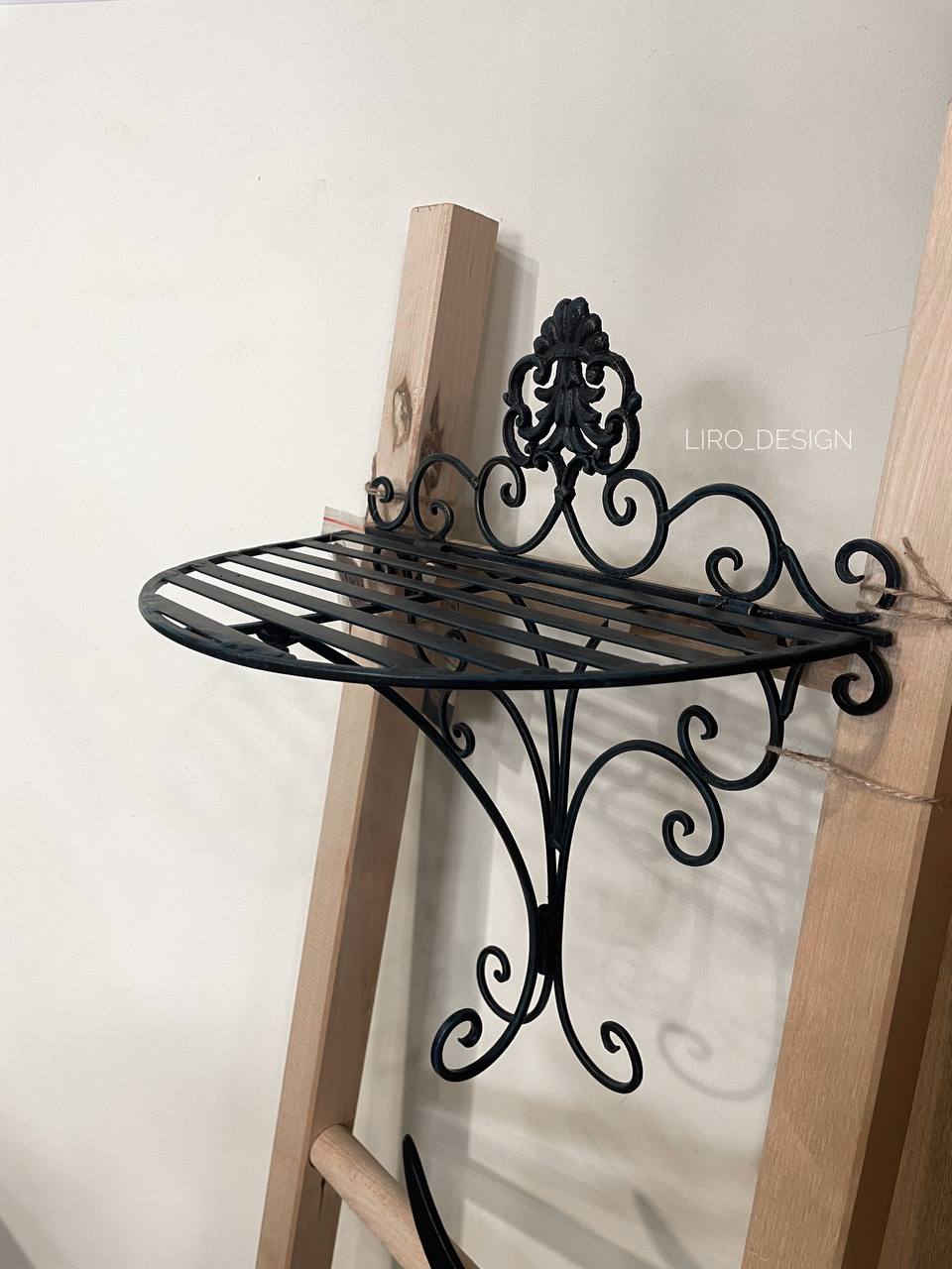Міцна металева конструкція забезпечує надійність і довговічність, дозволяючи розміщувати як декоративні елементи, так і більш вагомі предмети. Полиця ідеально підходить для книг, ваз, свічок, рослин чи улюблених дрібниць, допомагаючи створити охайний і продуманий простір.