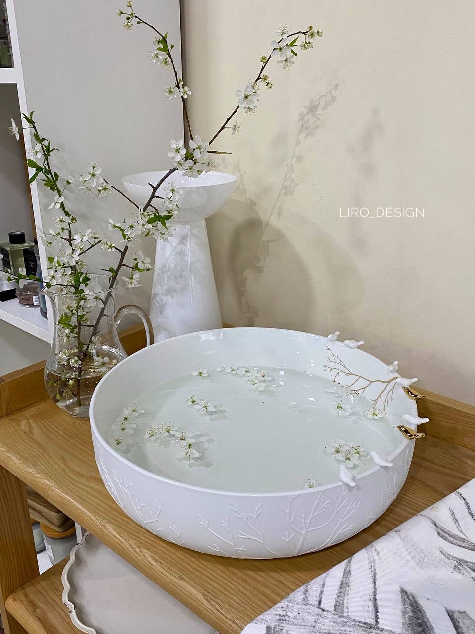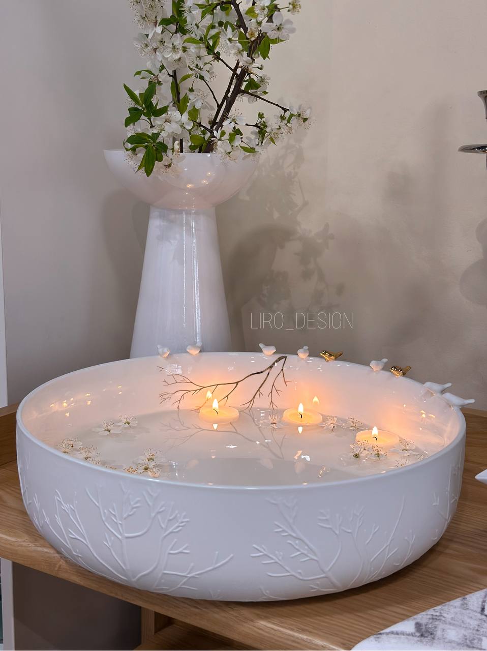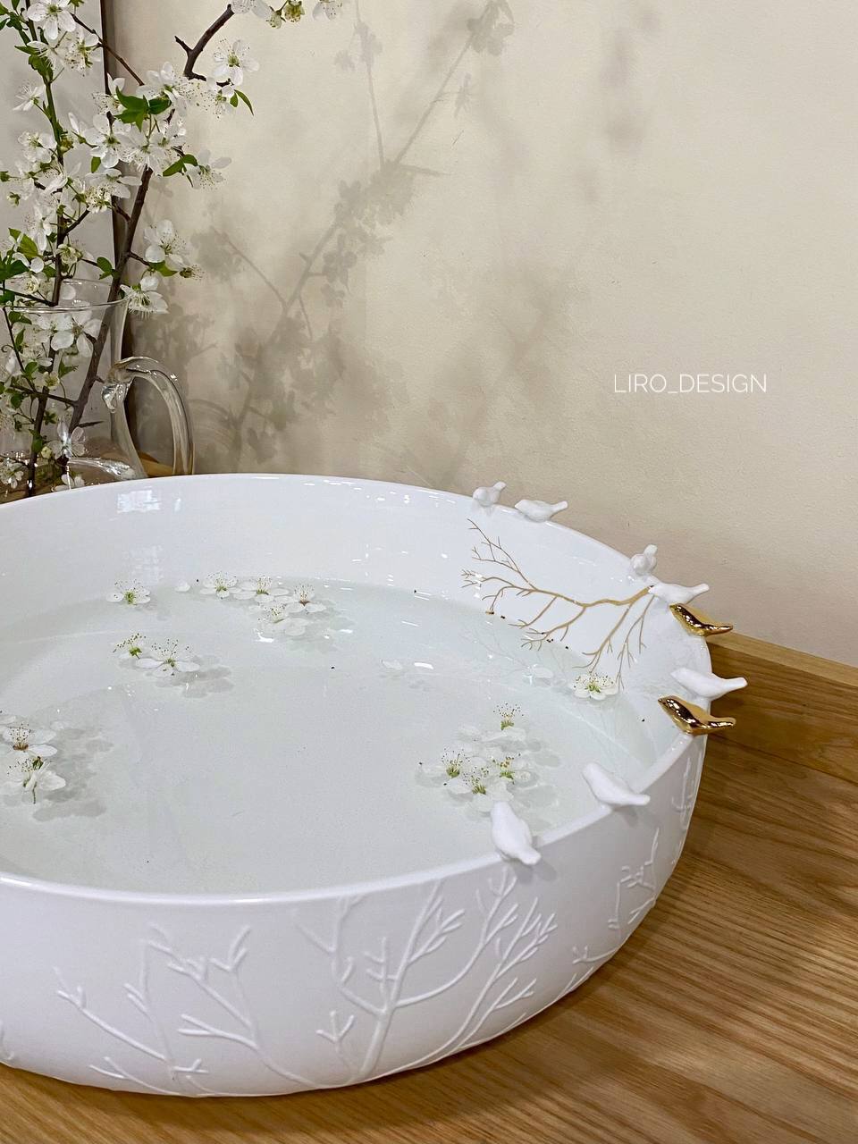 Витончене декоративне блюдо з колекції Flock of Birds від Räder — це поєднання мінімалізму та делікатного дизайну. Білосніжна поверхня прикрашена рельєфним візерунком, ніжними пташками та золотистими акцентами, створюючи ефект легкої, повітряної композиції.