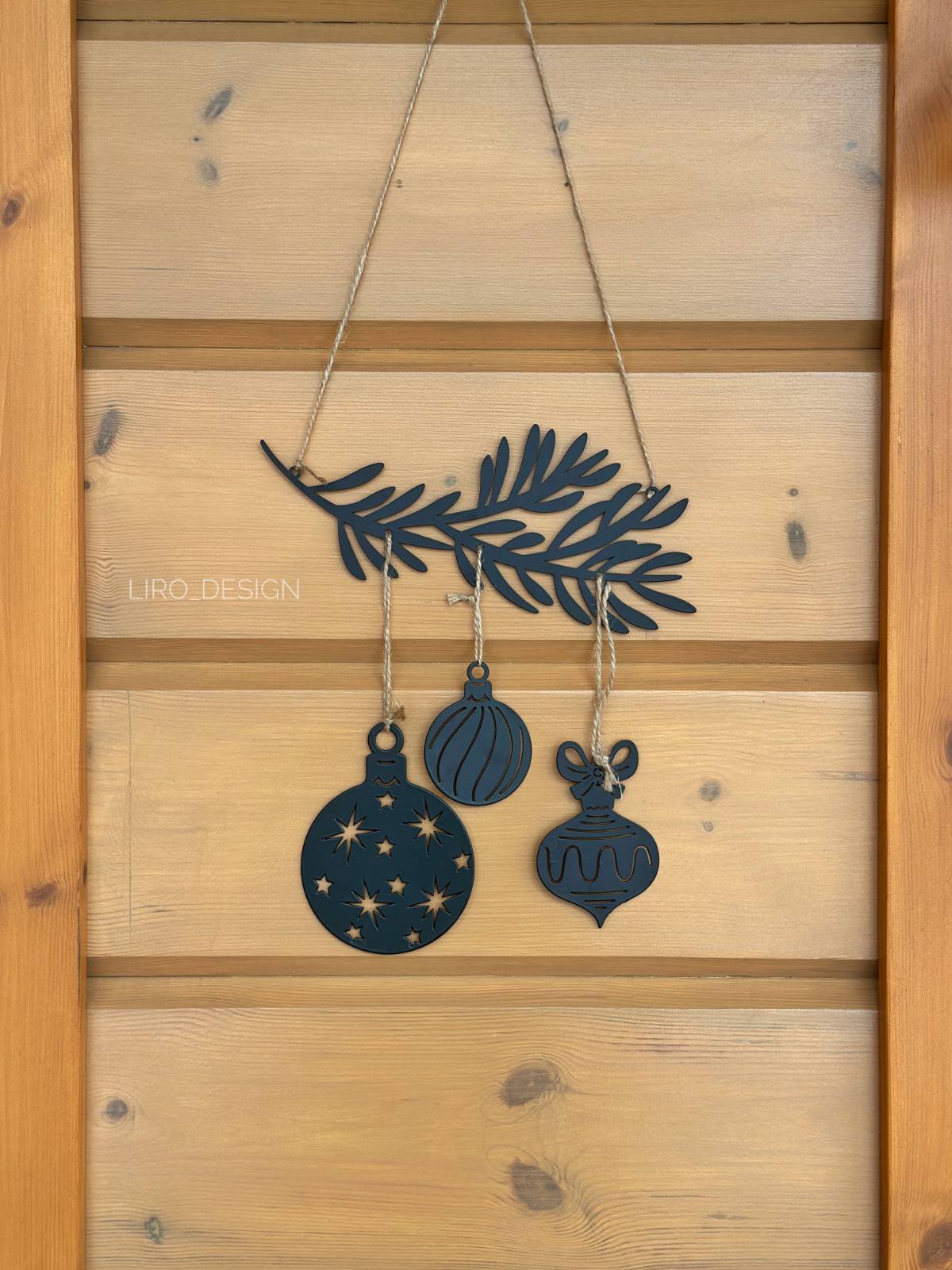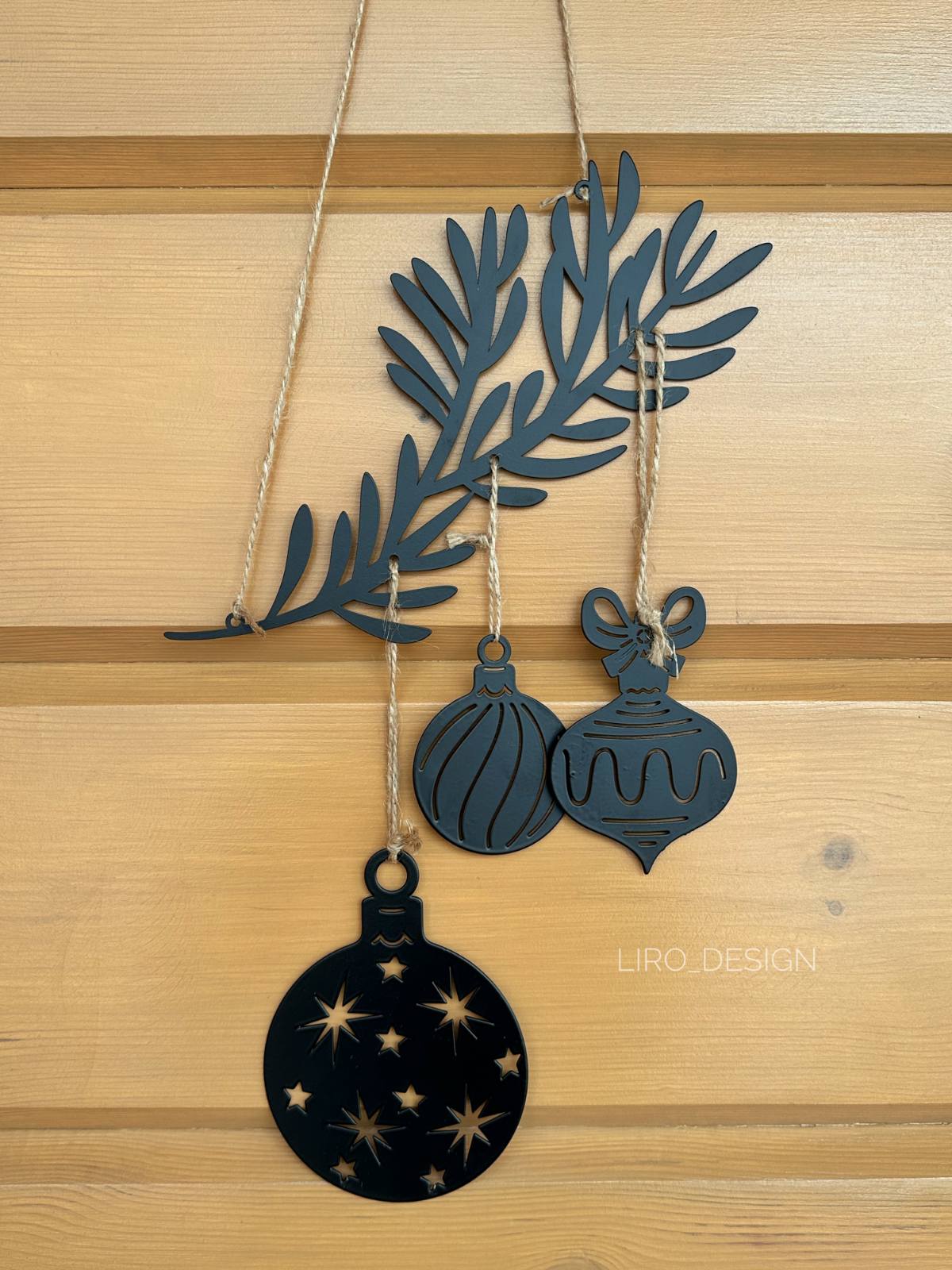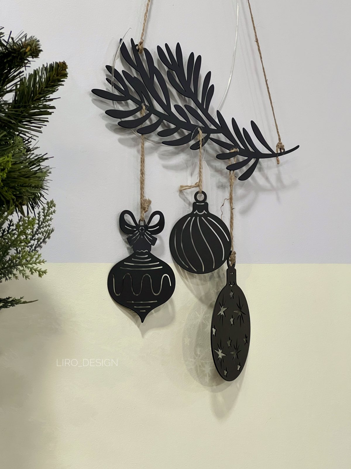 Стильна та лаконічна підвісна гілка з іграшками доповнить святково дім чи терасу.