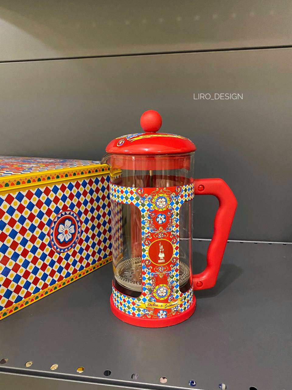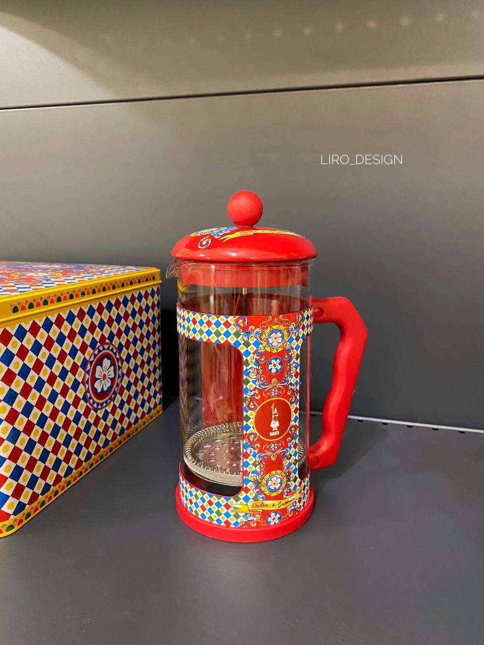 Френч-прес Bialetti Dolce&Gabbana Sicilian Cart French Press 1Л— це поєднання елегантного дизайну, італійської кавової культури та бездоганної якості. Модель створена у колаборації легендарного виробника кавових аксесуарів Bialetti та відомого модного дому Dolce & Gabbana і входить до колекції Sicilian Cart, натхненної традиційними сицилійськими орнаментами та яскравими кольорами італійського мистецтва.