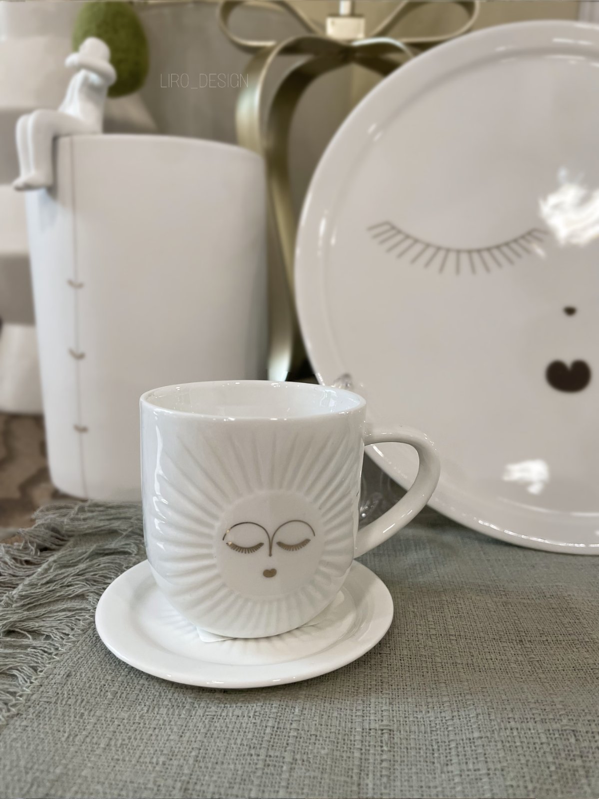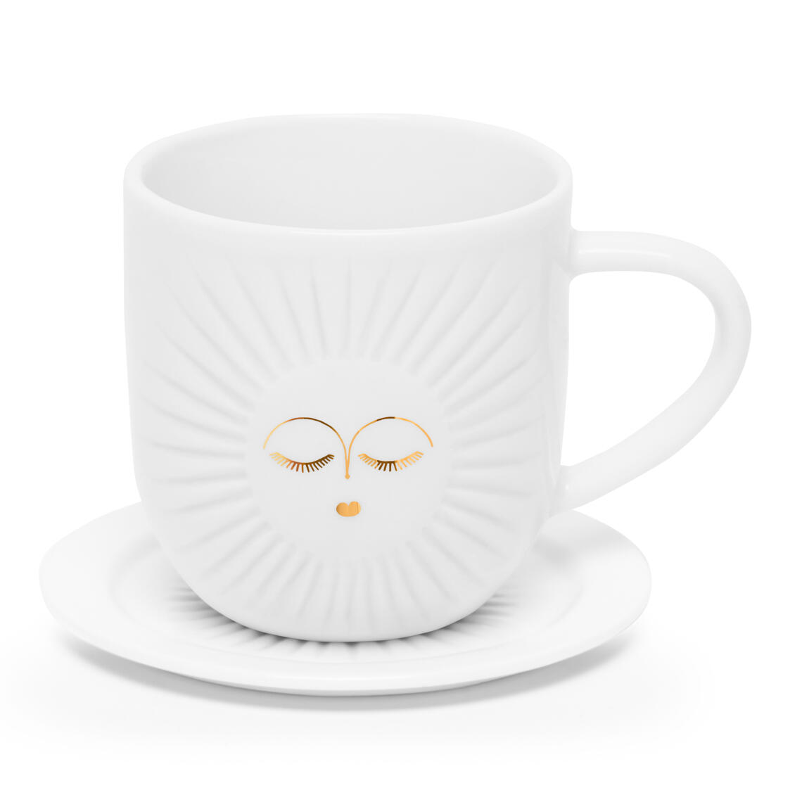 Лаконічний білий дизайн у поєднанні з делікатним рельєфом у вигляді сонця створює особливий настрій і додає сервіруванню легкого акценту. Компактна форма чашки ідеально підходить для еспресо, дозволяючи повністю насолодитися смаком та ароматом кави.